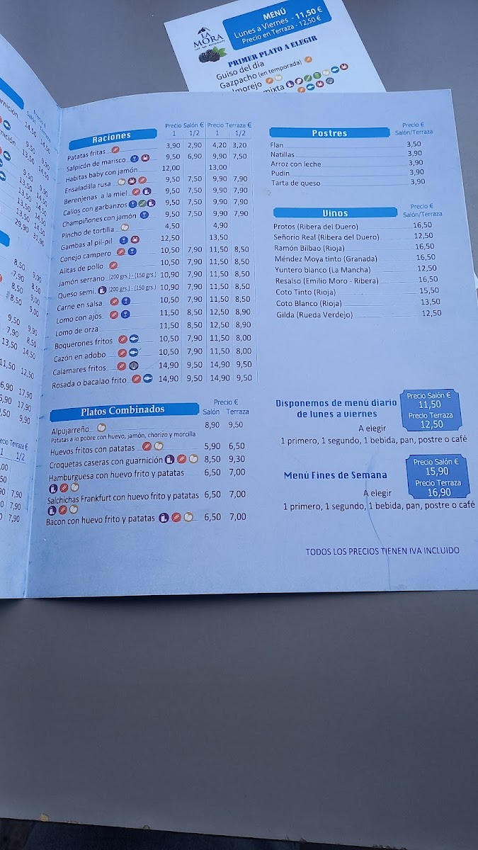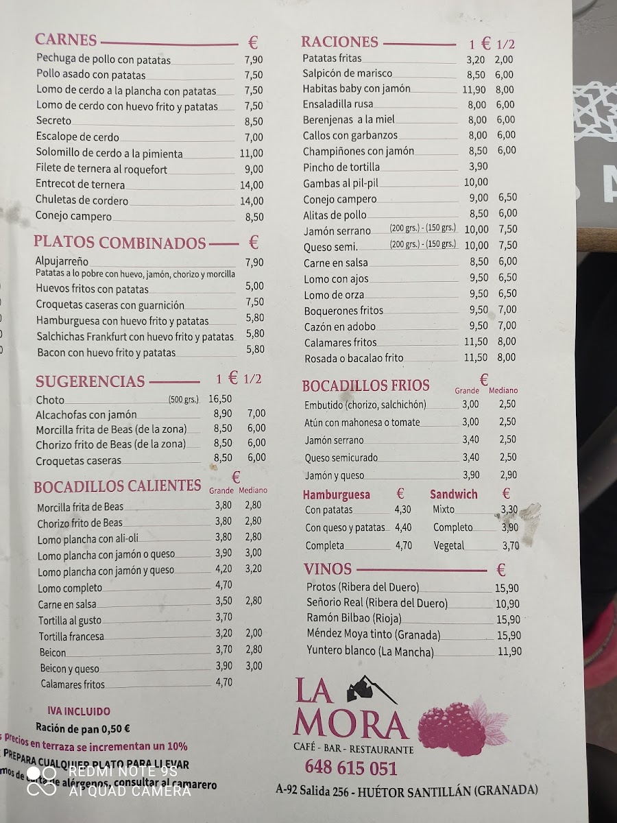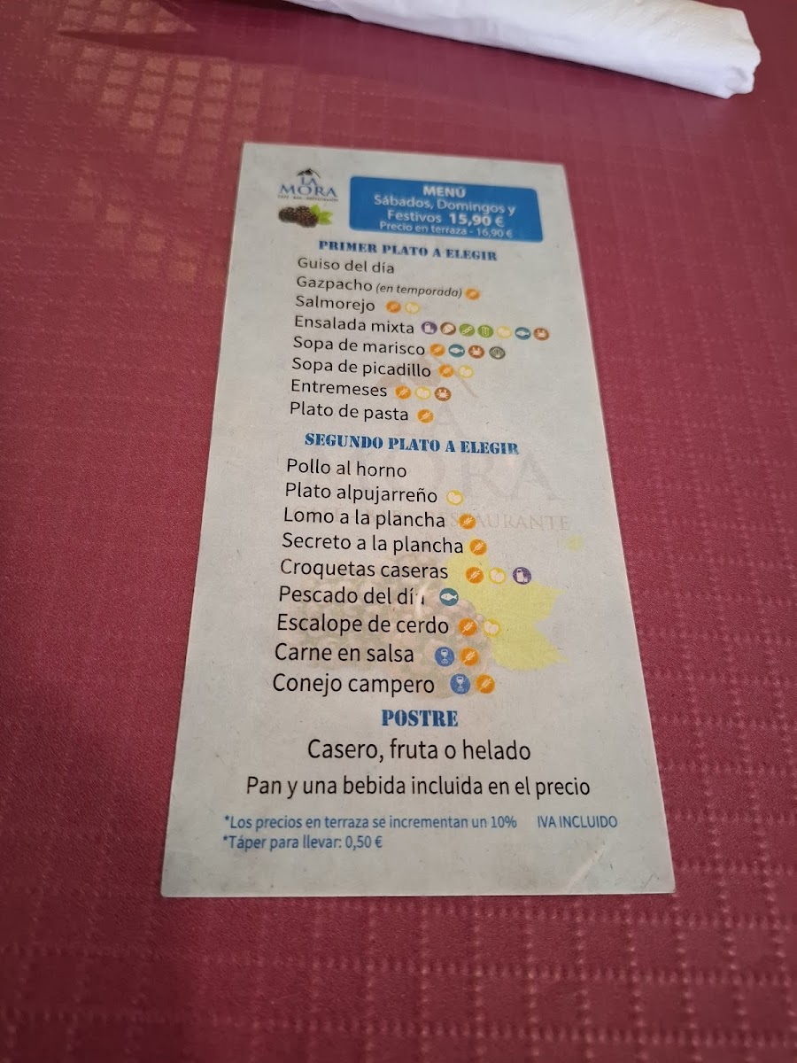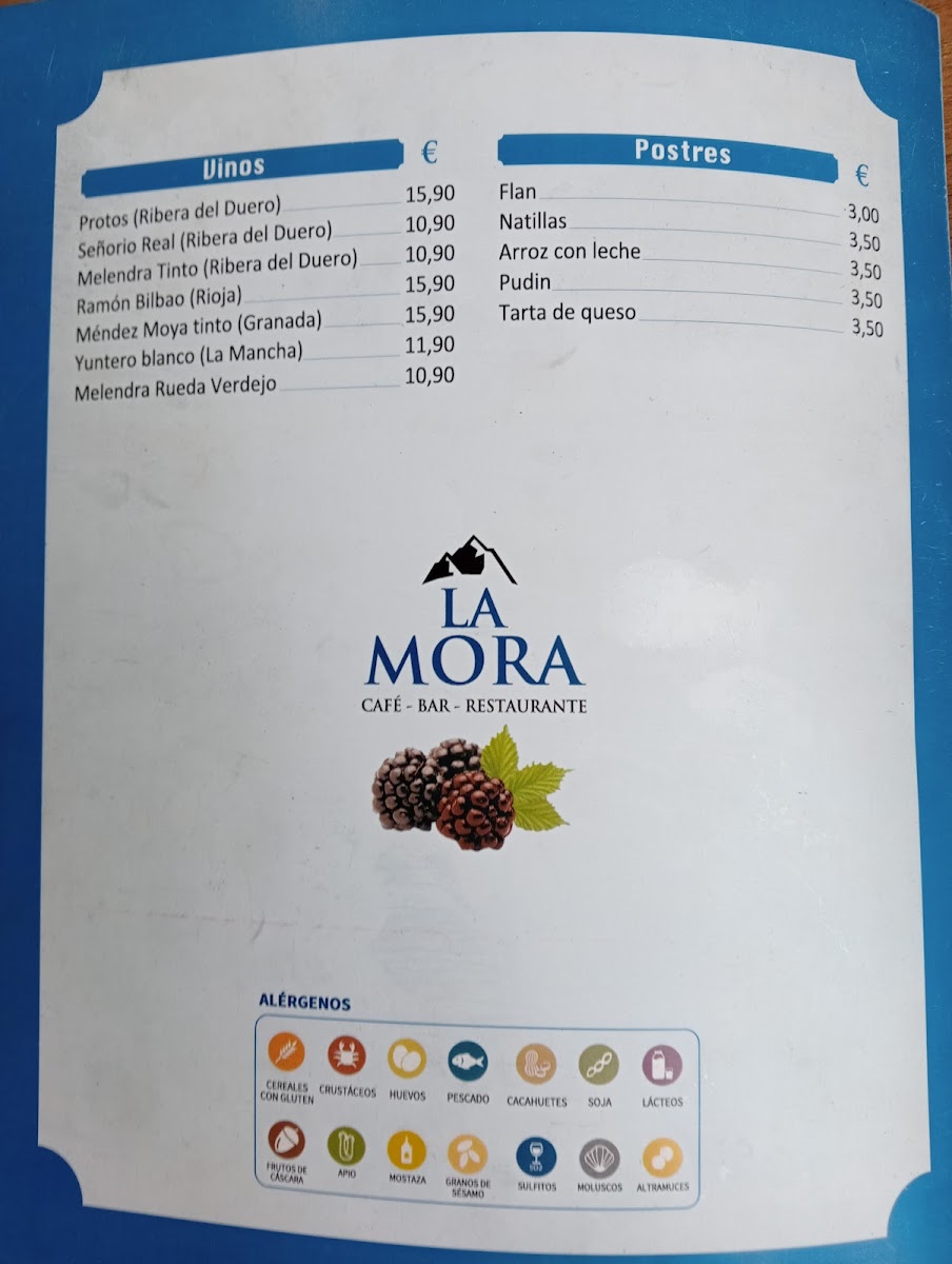 Cafe Bar Restaurante La Mora Menu